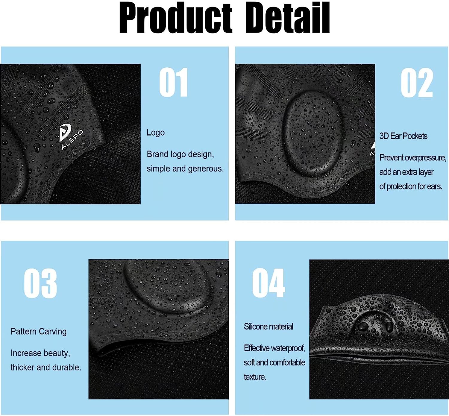 - Premium & Thicker Silicone Material: Alepo swim cap is made from high-quality eco-friendly silicone material, which features durable, tear-resistant and anti-aging. Great elasticity makes it stretch easily, no deformation after repeated use. The silicone material is also odorless, non-toxic, skin-friendly, so our premium swim cap is safe to use!