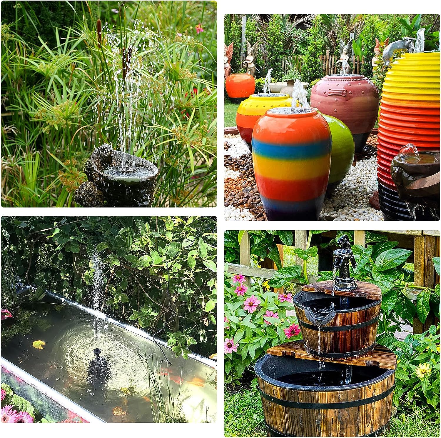 - [✔6 Different Water Styles]: This solar bird bath fountain kit comes with 6 different nozzles that can be easily changed to get different jet shapes to prevent water from splashing nearby. It can be attached to a hose to make different water features to suit your good ideas. It is a versatile solar water pump that is perfect for bird baths, fish tanks, small ponds and gardens.